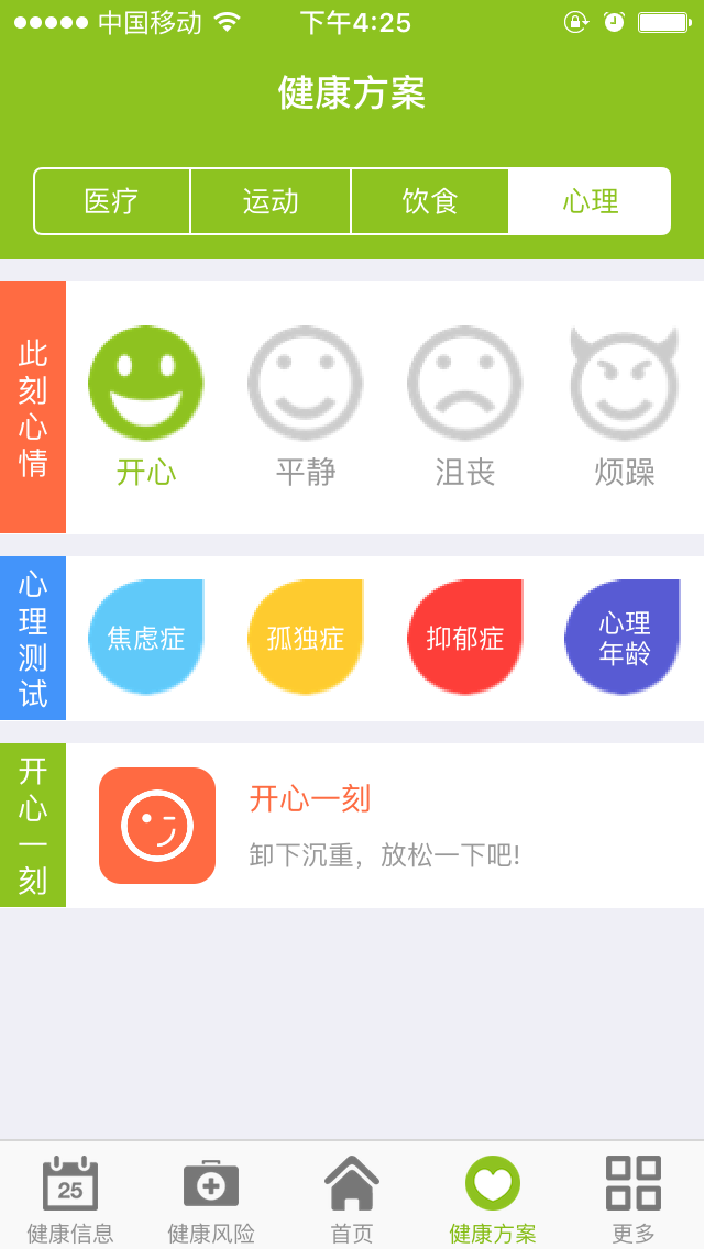 健康状态:反馈用户目前的运动、饮食、心情、医疗等相关的健康信息;