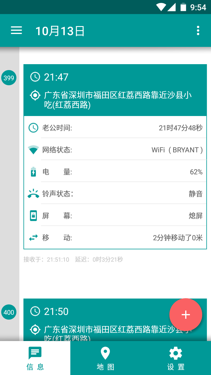 地理位置,手机电量,WIFI名称,铃声状态,屏幕亮暗……您就能看到您爱人的这些信息。信息发送间隔为3至4分钟(不同手机,可能略有差异),这样的设计,也是出于手机续航与信息有效性的综合考量。