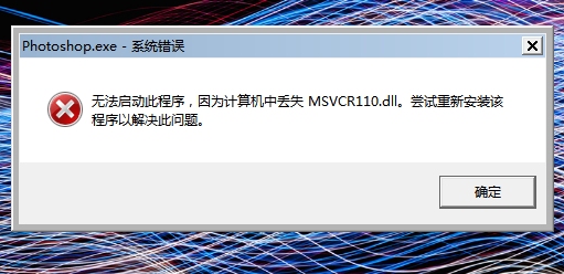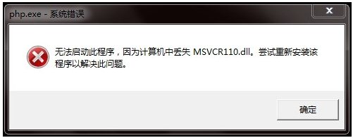 程序无法启动,因为您的计算机缺少msvcr110.dll。尝试重新安装程序来解决这个问题。启动msvcr110.dll发生错误。无法找到指定的模块