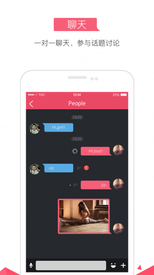 聊天对话将以一对一的形式呈现,保证使用过程中的私密性和体验感,同时可进入推荐的话题中参与交流互动;