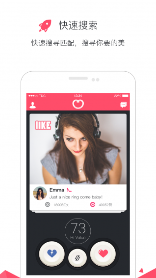 【陌生人匹配筛选】1、根据用户提供的性趣爱好,推荐可能喜欢的人或话题,通过滑动首页推荐的用户头像,选择感兴趣的内容,进行对话。