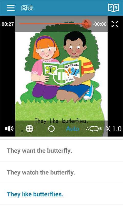 1)图书阅读此应用专为移动环境精心设计。支持边看边听,支持下载音源,支持显示字幕,自由点播任何一段音频。听完故事之后,即可做听力练习。