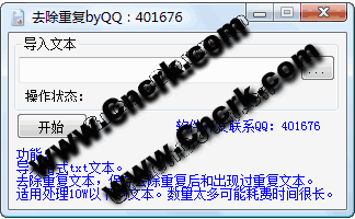 去除txt文本里面重复的文本。保存去除后文本,和出现过重复的文本。适用于处理100000以下的文本数据。重复按照文本行计算。即去除重复文本行。