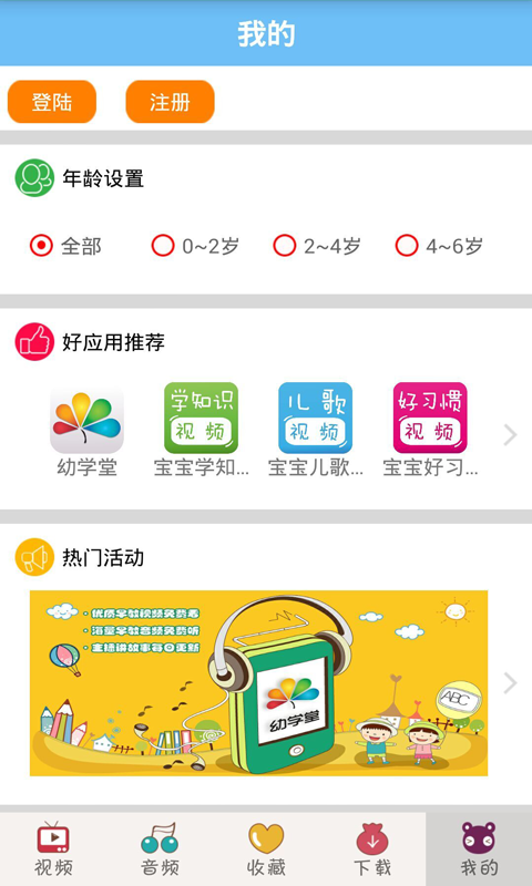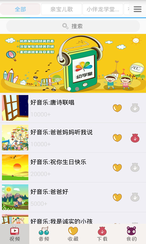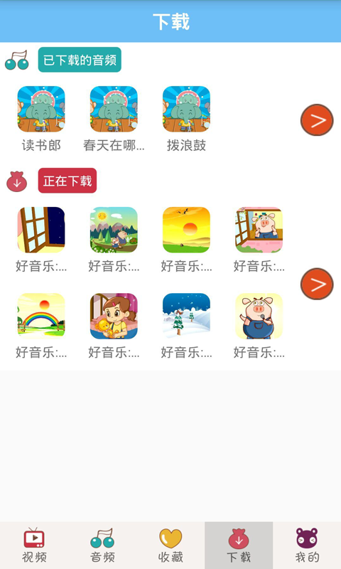 我们为0-6岁宝宝精心挑选了千余首精彩的儿歌音频、视频节目,全免费!无广告!可下载!粑粑麻麻们快来使用吧!经典儿歌全都有:两只老虎,小兔子乖乖,拍手歌,小星星,小毛驴,数鸭子,拔萝卜,可爱淘,甩葱歌,一分钱,小老鼠上灯台,生日快乐,春天就是我,小红帽,歌唱二小放牛郎,外婆的故事,小螺号,我是一只小小鸟,友谊天长地久……