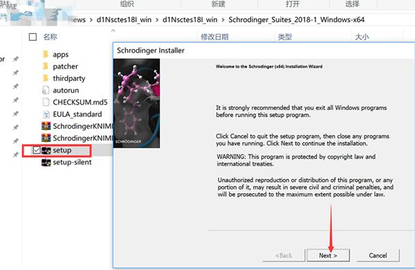 Schrodinger Suites 2018安装激活教程1.本站下载压缩包,解压后双击setup.exe安装,点next继续
