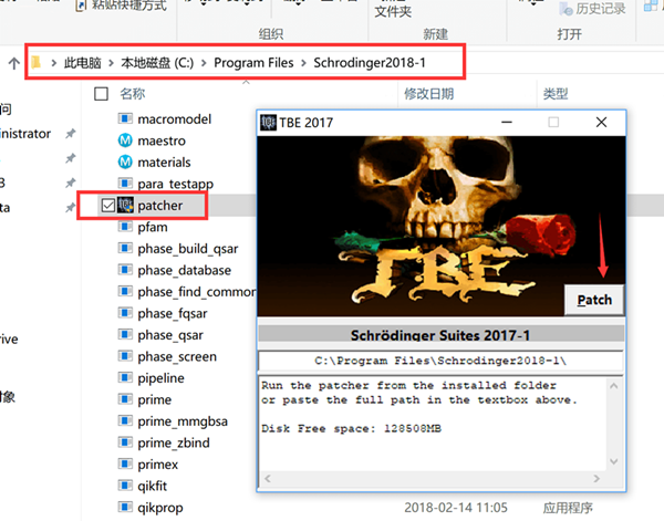10.将patcher文件夹内的patcher.exe复制到安装目录(默认:C:\Program Files\Schrodinger2018-1)