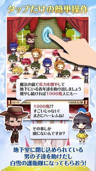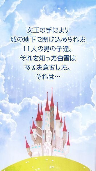 很久很久以前的某天在王宫内散步的白雪公主,路过王后的房间时听到了奇怪的声音:“镜子啊镜子!快映出这个国家的美男吧!”好奇的白雪公主扒开门缝,发现王后面前的镜子中出现了一位十分帅气的青年,随后,王后拉起这位青年的手消失在了房间的尽头。“刚才是什么鬼??”不过她立刻停止了诧异,产生了一个新的想法——“我把这面有魔力的镜子偷过来研究一下不就好了?”就这样,白雪公主与11位美男的故事,就此拉开了帷幕。