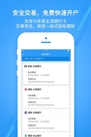 便:支持10家银行卡开户交易