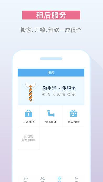 【租后服务】嗨住还为租客提供了房租分期、室友征选、搬家维修等系列租后服务。