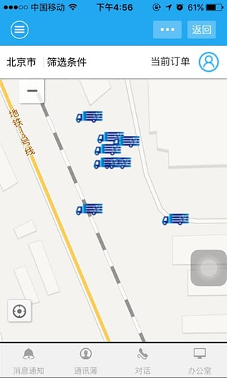 客户进入APP,可定位到客户当前位置,检索出客户周围的移动充电车,在线下单,预约充电车充电并且在线结算,还提供客户交易记录及钱包积分、金币和优惠卡的维护功能。