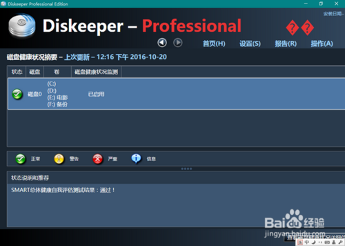 同样的,在主界面点击进入“磁盘健康状态警报”,便可以看到当前对各个分区采用的维护设置,在此建议大家交由 Diskeeper 自动维护。