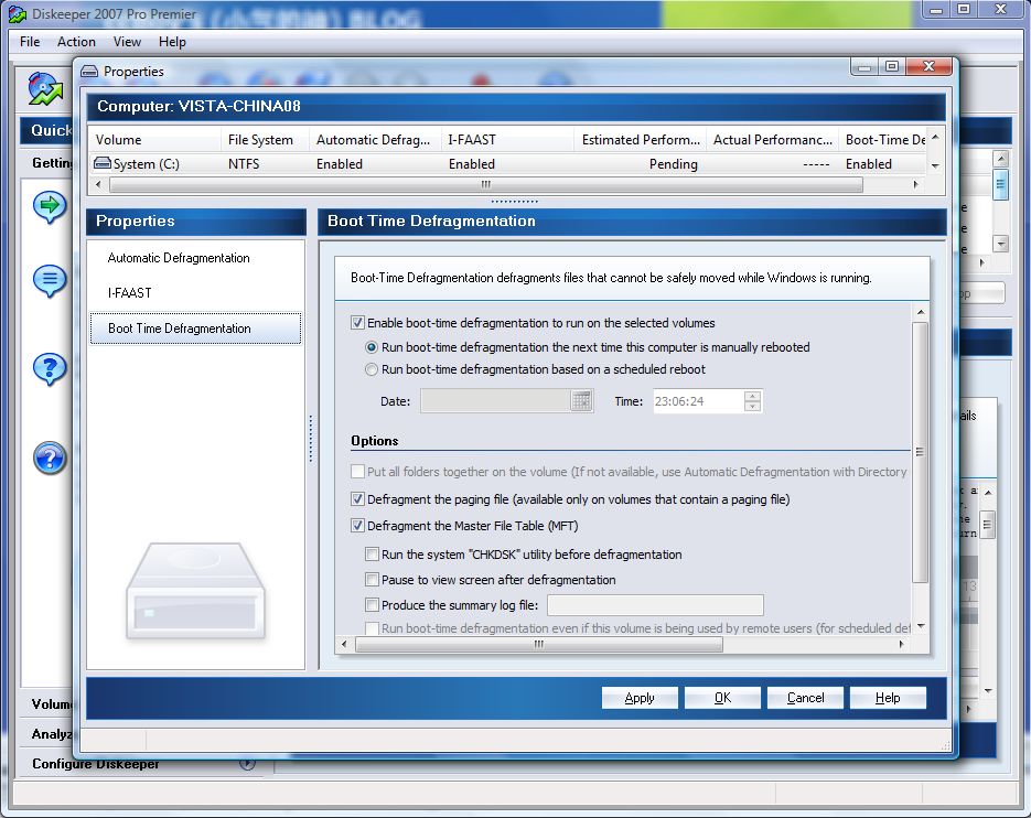而倘若为存在 分页文件或为NTFS 文件格式的分区执行“启动时碎片整理”这个功能时,那么还有更多的设置选项可供设定。在对 NTFS分区启用“启动时碎片整理”功能时,可勾选“对‘主文件表’(MFT)进行碎片整理”选项,即能启用MFT碎片整理功能。