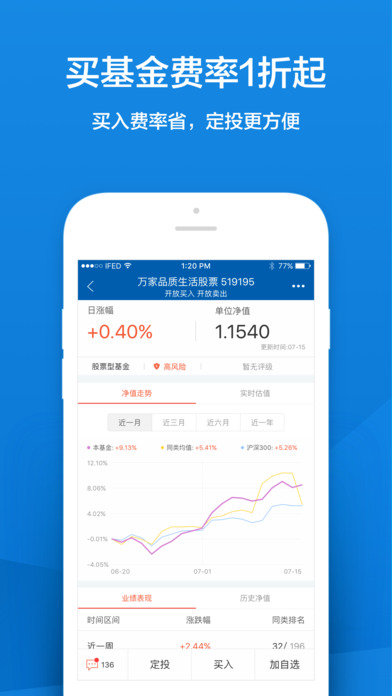 【全面的基金理财】· 省时省钱就是赚钱:买入费率全场1折起,卖出T+1日24点前极速到账(QDII基金和香港基金除外)。