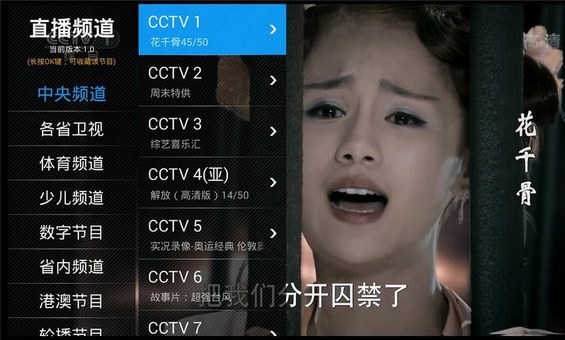1.各卫视台覆盖广:浙江电视台、湖南卫视、江苏卫视、东方卫视等全部卫视台,轻松观看中国好声音、爸爸去哪儿、非诚勿扰、奔跑吧兄弟等综艺节目,还有最新电视剧《大好时光》!看节目还是要看直播,最新内容先一步掌握!2.央视频道全面覆盖,cctv13的新闻、cctv6的最新电影、cctv5的体育赛事、cctv11的全天戏曲,同时满足家庭中的不同需求。