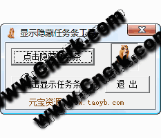 显示隐藏任务条工具 平常大家都知道,系统也有功能隐藏,但是把鼠标移过去任务条就显示了,对于一些上班族或其它用处的朋友来说,在玩与工作或别的不相关的事情,又不想别人一过来就看到任务栏里显示什么最好用这个来试试,这个工具隐藏后,只有点击这个工具来显示才会显示,非常实用的一个小工具。