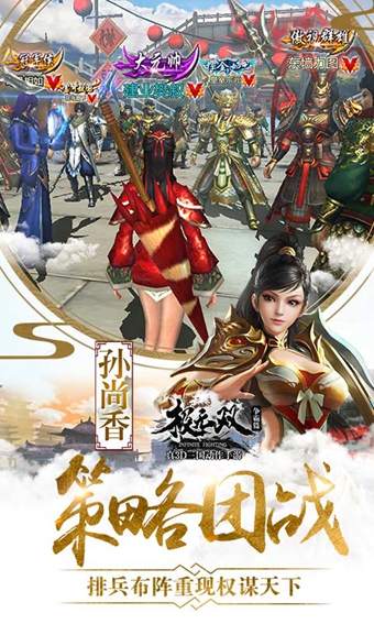 3D建模、云集百名武将,坐拥貂蝉,统领吕布,三国名将为我所用!多主将切换、装备无损继承,3V3对战热血真竞技,决胜三国,一统江山!