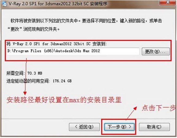 第六步:设置安装路径,安装路径最好是设在与相对max的安装目录里。要是你的电脑里多安装了几个max,就容易出错。