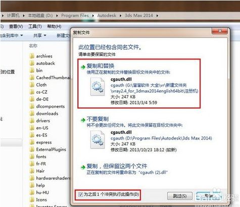 第十步:把注册机里的两个破解文件(cgauth,dll和vray2012.dll)复制粘贴到vray渲染器2012中文版安装目录里,并替换原先的。