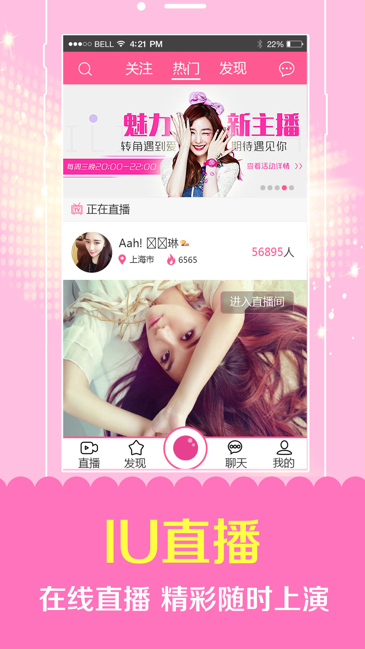 iu直播,移动直播新体验,随时随地与主播聊天互动亲密接触,清纯美女、校花嫩模、吃货萌妹、网红潮人、小鲜肉、老司机统统都到碗里来!网红直播开启洛阳之旅,带您领略九朝古都的历史、人文、地理、美食的风采!