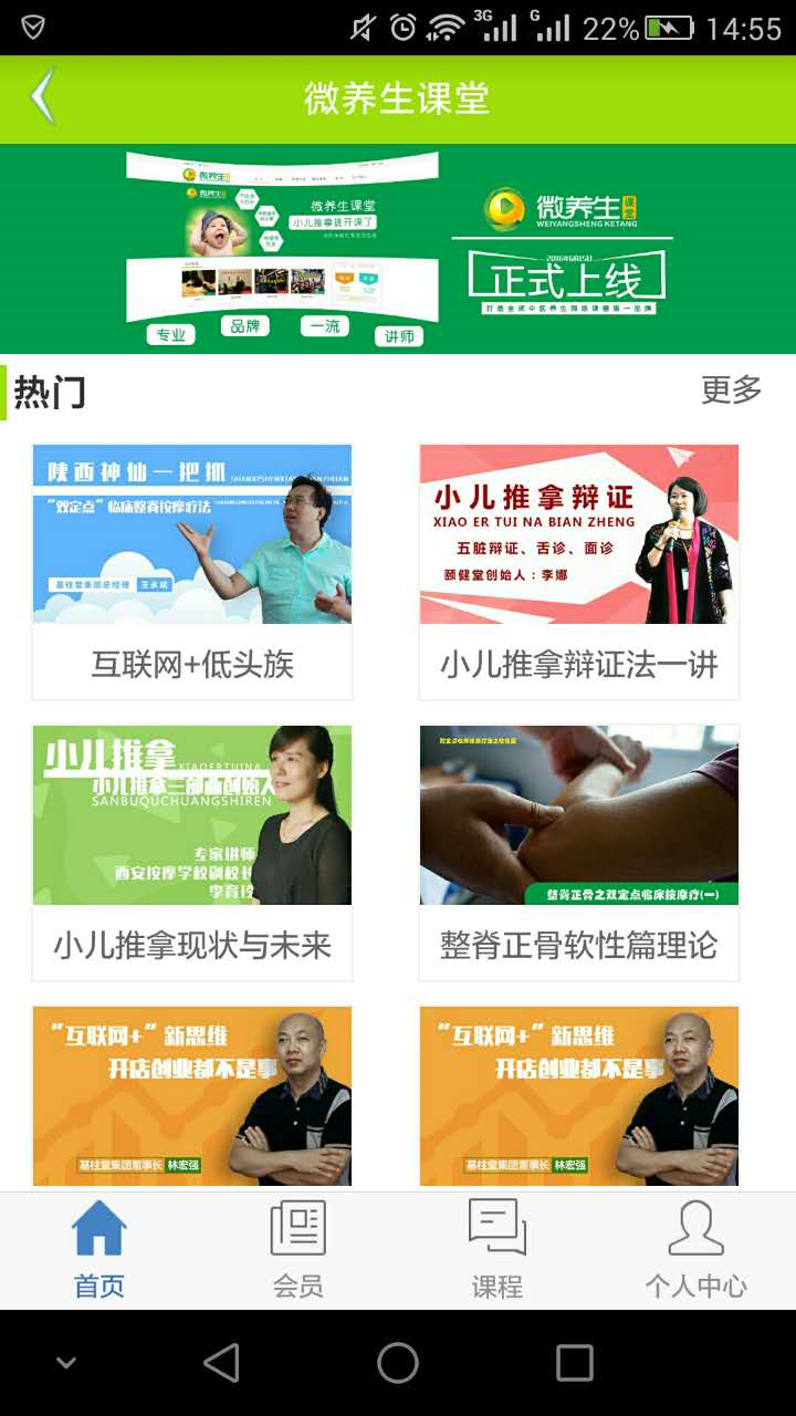 冬日养生中医课堂app在做什么立足于实用性和适应市场的要求,课堂精选各类养生课程,与多名中医行业权威专家、教授等一同合作,课程数量已达1000+,课时总数超5000,涵盖中医养生、按摩手法、推拿手法、小儿推拿手法、拔罐手法、泻血手法、艾灸手法、足疗手法、食疗养生、各类针法等20余大门类,其中不乏数量可观、制作精良的独家课程。从用户养生、用户创业、用户就业等多个维度,为用户打造实用的学习平台。团队介绍这里,汇聚了一群有梦想的人。我们,或来自医院医师,拥有国家三甲医院等国家知名大医院的多年工作经历;我们,或来自国内行业专家,在养生行业里探索养生的创新技术;我们,拥有互联网、医疗、教育等不同背景,却将同打造中国最优质的在线养生技能学习平台作为了共同使命;我们希望,通过我们的努力,能够让更多人获得受到一流职业技术教育的机会,而通过教育,让我们的民族真正获得从内在腾飞的力量。在这里,在微养生课堂,成千上万的人已经或正在改变生活,这正是我们的价值所在。