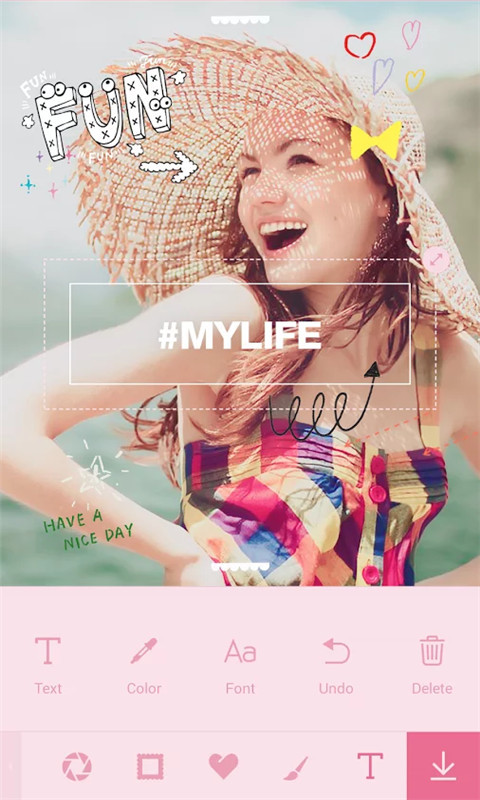3、自制手绘贴图:你可以自己绘制的图案和文字制成贴图,还可以将照片中的一部分剪出来制成贴图!