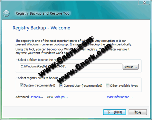 简单实用,可以帮助备份和恢复指定位置的注册表