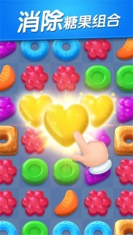 只需把三个颜色一样的糖果连成直线,就能达成消除任务。要是把四个颜色相同的糖果连成直线,便会生成一个魔法区域。