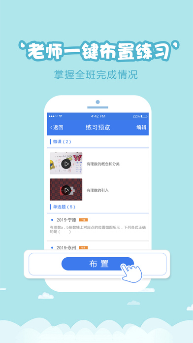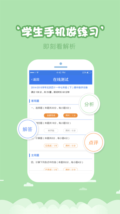 1、老师可15秒布置一次作业,10秒发送一次富媒体的班级消息,作业批改进入移动时代,老师再也不抓狂啦2、国内第一家真正实现移动设备上使用智能笔做主观题的应用,彻底打破在线作业类应用只能做客观题的尴尬,实现测练过程的闭环