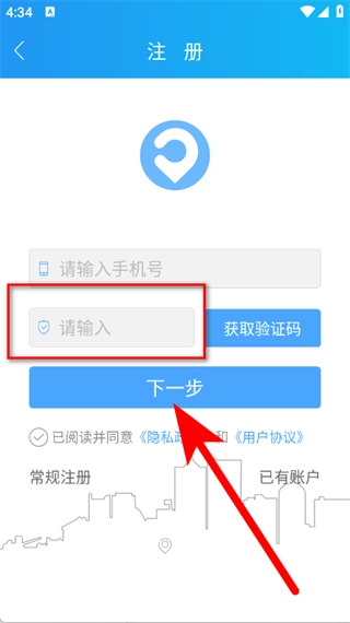 4、填入验证码,点击“下一步”按钮,从而完成账号注册。