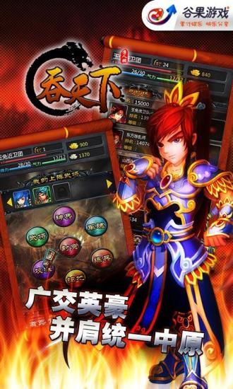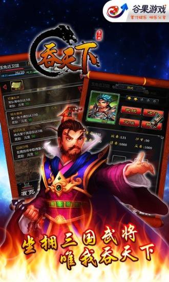 《吞天下》是一款三国题材的卡牌养成手机策略游戏,画面古典厚重。拥有多种玩法,炫丽的武将。多样的养成。通过特有的封赏系统与奖励制度,使您不用花钱也可以获得顶尖的感受。
