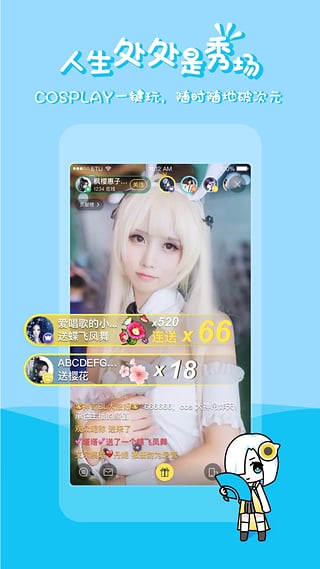 最带感的跨次元直播APP,让你化身百变大咖,随时直播不一Young的人生!百种动漫造型任选,一键突破次元壁,人生处处是秀场,你就是COSPLAY达人!【人生处处是秀场】一键换装变场景,人人都能玩COS,随时随地化身动漫主角!