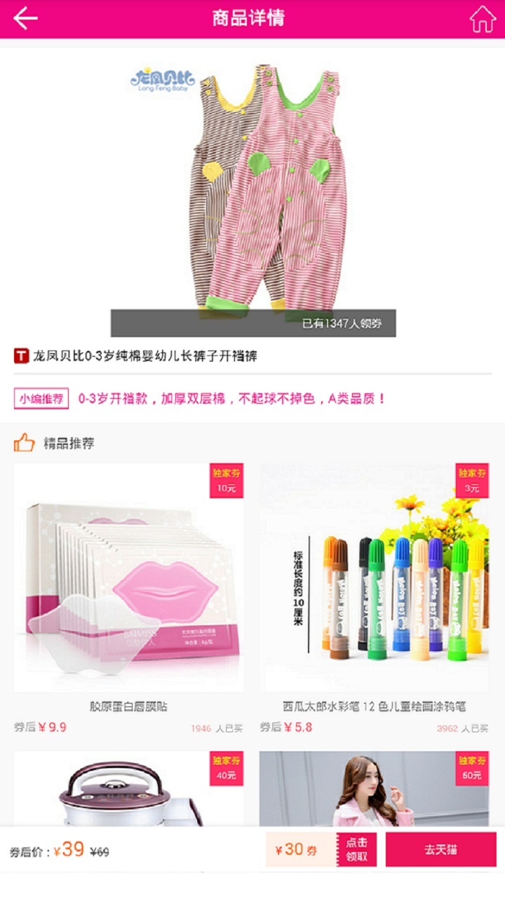 1、芝麻购每日万款商品优惠券,低折扣基础上再提供独家优惠券,商家亏本让利2、劲爆促销:限量抢购、9.9包邮专场、新人专享、优惠券等
