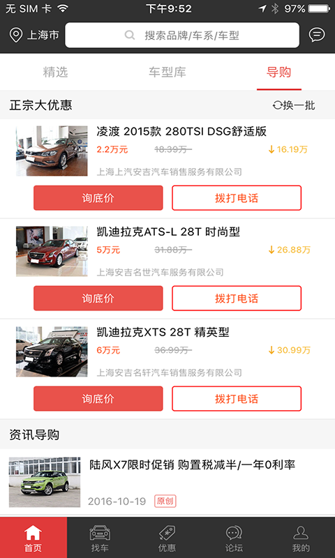 汽车街是全国领先的汽车电商网站平台,致力于为消费者提供丰富快捷的汽车资讯和高品质的汽车消费服务。提供包括新车、行业、导购以及用车等汽车信息内容,并且向消费者提供车辆挑选、车辆导购、社区服务和其他汽车优惠增值服务。【软件特点】
