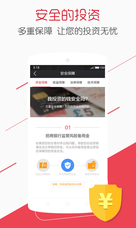 1.聚生财app的资金通过招商证券资金托管、阳光承保,更有招商银行专户管理的风险备用金,全方位保障了资金。