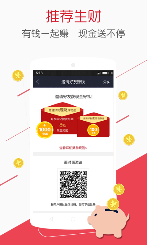理财社交化:推荐理财产品,分享理财红包,朋友成为您贴心的理财顾问,让您投资更安心。