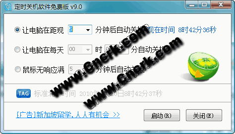 定时关机软件免费版可以在三种模式下运行 1.指定多少分种后自动关机 2.指定某个时间自动关机 3.指定鼠标无响应多少分后关机 这个免费定时关机软件使用起来十分简单