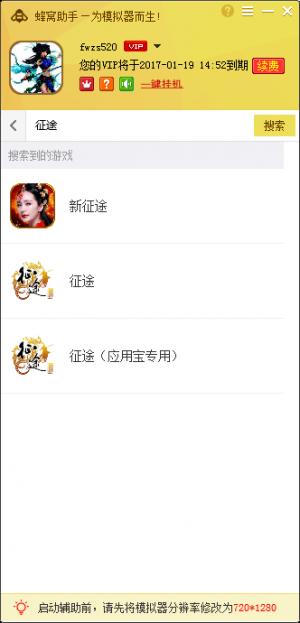 1.打开任意一款安卓模拟器,并将模拟器分辨设置为720*1280后,运行游戏。