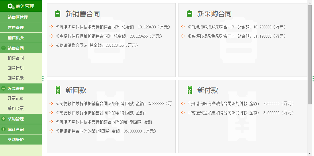 商务管理:对客户、合同、发票、采购、投标、中标等商务相关的活动进行管理。