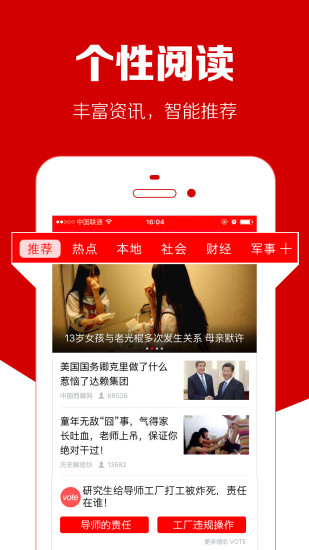 1、个性栏目任你淘2、杂志式阅读体验