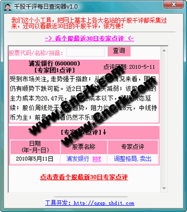 千股千评每日查询器 V1.3 简体中文绿色免费版 我们知道,每个网站都有自己的千股千评,而且只显示当天的数据,第二天就不会显示前一天的专家点评。而我们这个工具集成了新浪千股千评,全景网千股千评,和讯网千股万评,提供年月日方式查询,而且可以查看最新30日的专家数据,非常方便。