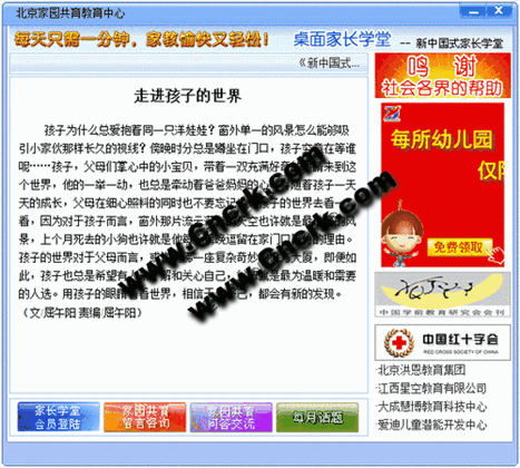 桌面家长学堂 V2.0.0.20 简体中文绿色免费版 《桌面家长学堂》是一款基于关注家庭教育人士设计的绿色软件,由北京家园共育教育中心开发。《桌面家长学堂》拥有“自动在线更新”功能,依托北京家园共育中心庞大的家庭教育资源,每天为用户免费提供一分钟阅读量的最新家庭教育理念。文章包括育儿理念,家庭教育资讯和家长学校的最新动态等,让家长在第一时间了解相关信息。软件目前拥有上百万的用户,是广大家长必备的幼儿教育软件。本软件可以免费下载,终生使用