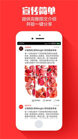 3.宣传简单:生动有趣的文案和图片,一键复制保存,可以分享到各大社交平台,让手机屏幕成为店主专属的广告牌。