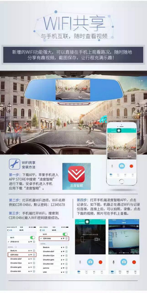 4.可实时预览或者下载查看记录仪SD卡的视频和图片,同时支持将图片、视频分享到微信和qq。