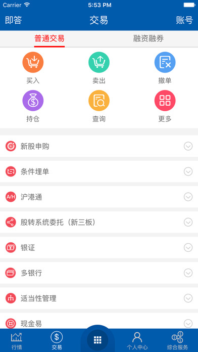 1.实盘交易:登录查看持仓、买卖股票、银证转账、委托撤单、交易明细2.条件埋单:自主设定条件,条件买入卖出,计划交易更成功