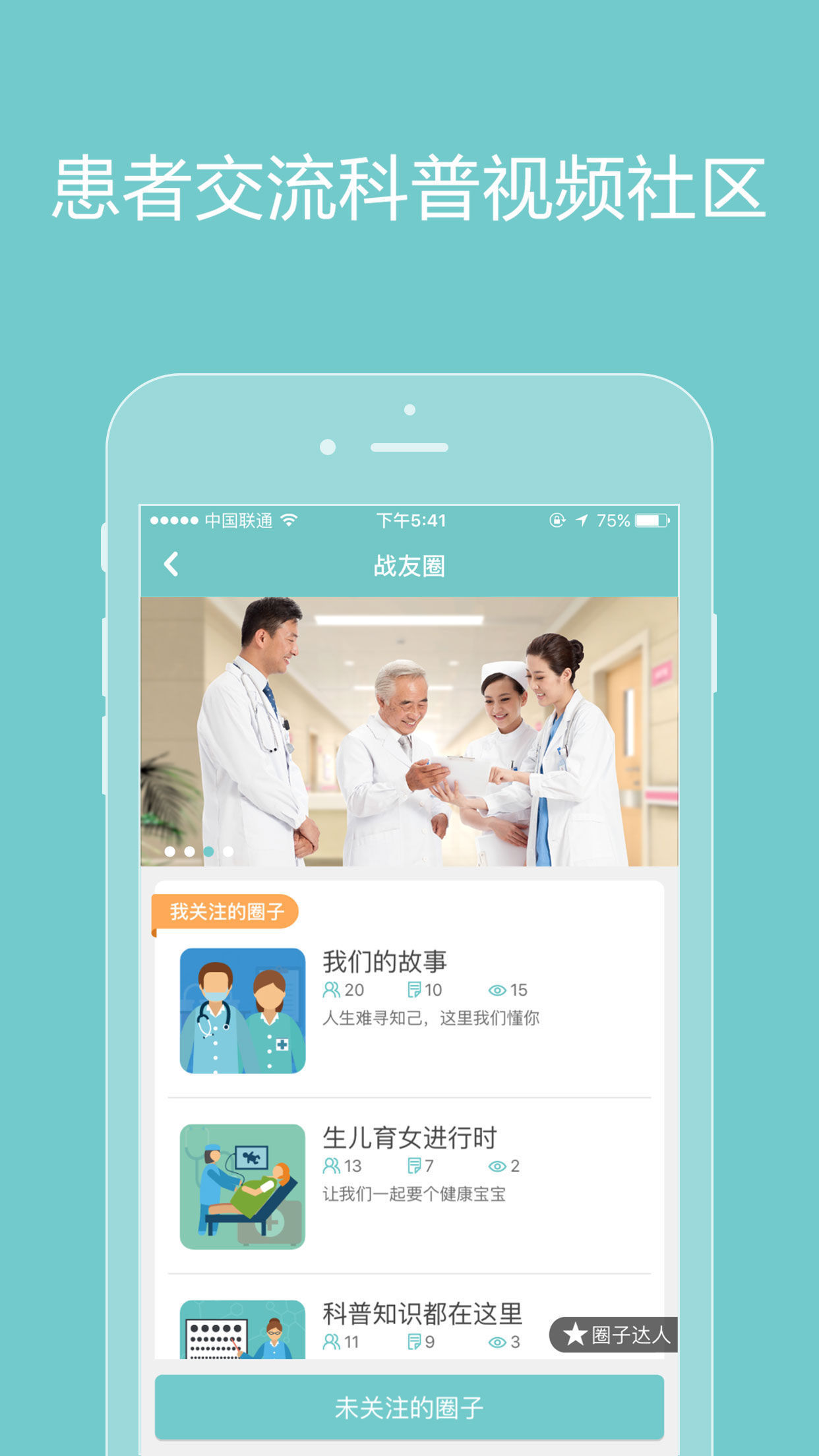 1.视频直播和录播,图文传输2.患者贴吧圈子,互动交流社区。