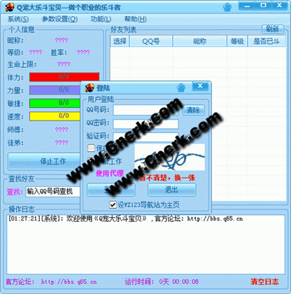Q宠大乐斗宝贝 V1.8 简体中文绿色免费版 1、自动收取推荐徒弟功能 2、一键开始停止工作功能 3、每日领取奖励功能 4、每日领取领取徒弟经验功能 5、自动打木头人功能 6、自动与好友乐斗功能 7、自动使用体力药水的功能 8、可个人信息、好友列表刷新等功能 9、可通过QQ号查找好友序号的功能 提示:主窗体的选择项目也是保存对象!请先设置!