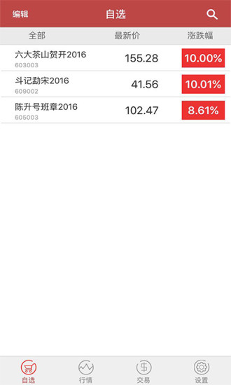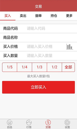 1、自选,能够随时进行自选,只需输入商品代码或者名称即可加入自选,随时了解最新的行情2、可以查看所有商品的最新行情,包括价格以及涨幅等