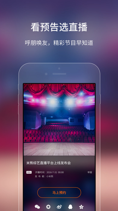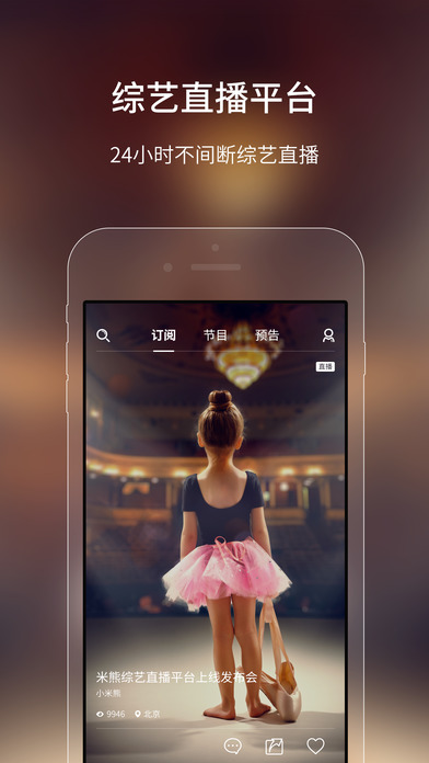 米熊直播,中国首个综艺直播平台,为每个有品质的内容或品牌打造自己的在线演播厅。拒绝秀场,只做高品质内容的直播,支持高清摄像和拾音设备做直播,是中国唯一一家为明星、大V、知识达人、专业PGC团队、教学培训老师等提供专业直播解决方案的平台.