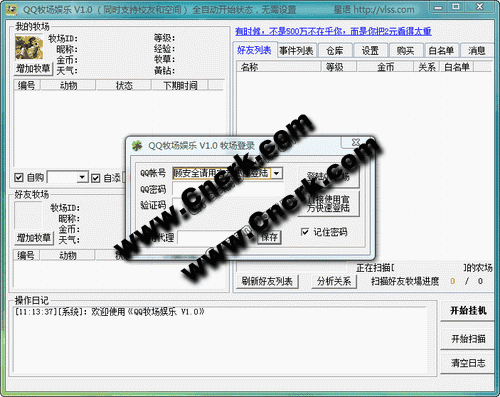 QQ牧场娱乐 V2.0 简体中文绿色免费版 制作此软件的目的主要是为了能更方便的操作QQ牧场,为您节约时间的同时给您的农场带来更高的收益.有了此软件您可以不用平凡的登陆QQ空间来操作QQ牧场.并且可以全自动为杀虫、收获、赶产。为您监视自己的牧场不被侵害,也同时为您监视好友牧场状态。实现了全自动化