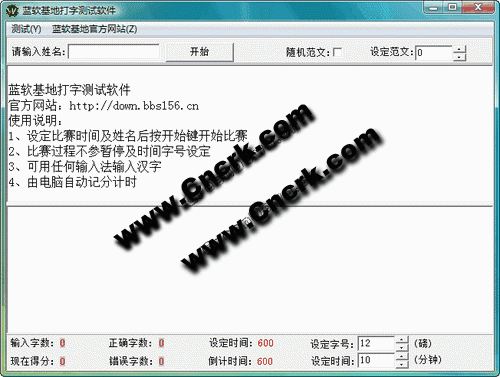 蓝软基地打字测试软件,可以帮助练习打字人员提高输入法使用的熟练度,通过down.bbs156.cn网站来下载最新的练习字库,同时本软件又能测试打字员规定时间内的汉字敲打数目
